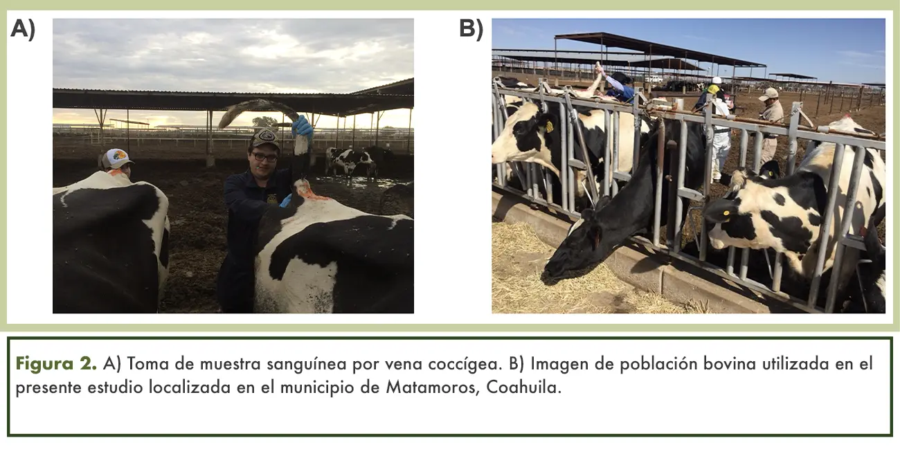 Se realizó un muestreo aleatorio en tres explotaciones diferentes de la región conocida como cuenca lechera de la Laguna, México. Se obtuvieron un total de 390 muestras de suero. El número de muestras fue establecido con base a las posibilidades de acceder a las producciones de la región así como por el número de animales disponibles en las mismas.
