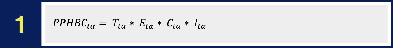 Donde PPHBCtα es el Precio promedio de huevo blanco al consumidor en México, para el mes t en el año α, expresado en términos reales, Ttα es el componente de Tendencia, Etα es el componente estacional, Ctα es el componente cíclico e Itαes el componente irregular o aleatorio.
