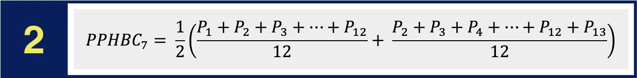 Dada que la serie PPHBCtα está expresada en meses, y debido a que la media móvil de doce meses caen entre meses sucesivos (junio y julio) en lugar de en el centro del mes, entonces, se calcula el promedio móvil centrado de doce meses, de la siguiente manera;