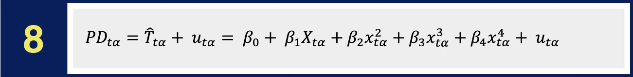 Para el presente estudio, se estimó a través de una función polinomial, donde el precio desestacionalizado (PDtα) es la variable dependiente, y la independiente es el tiempo (x) ecuación (8).