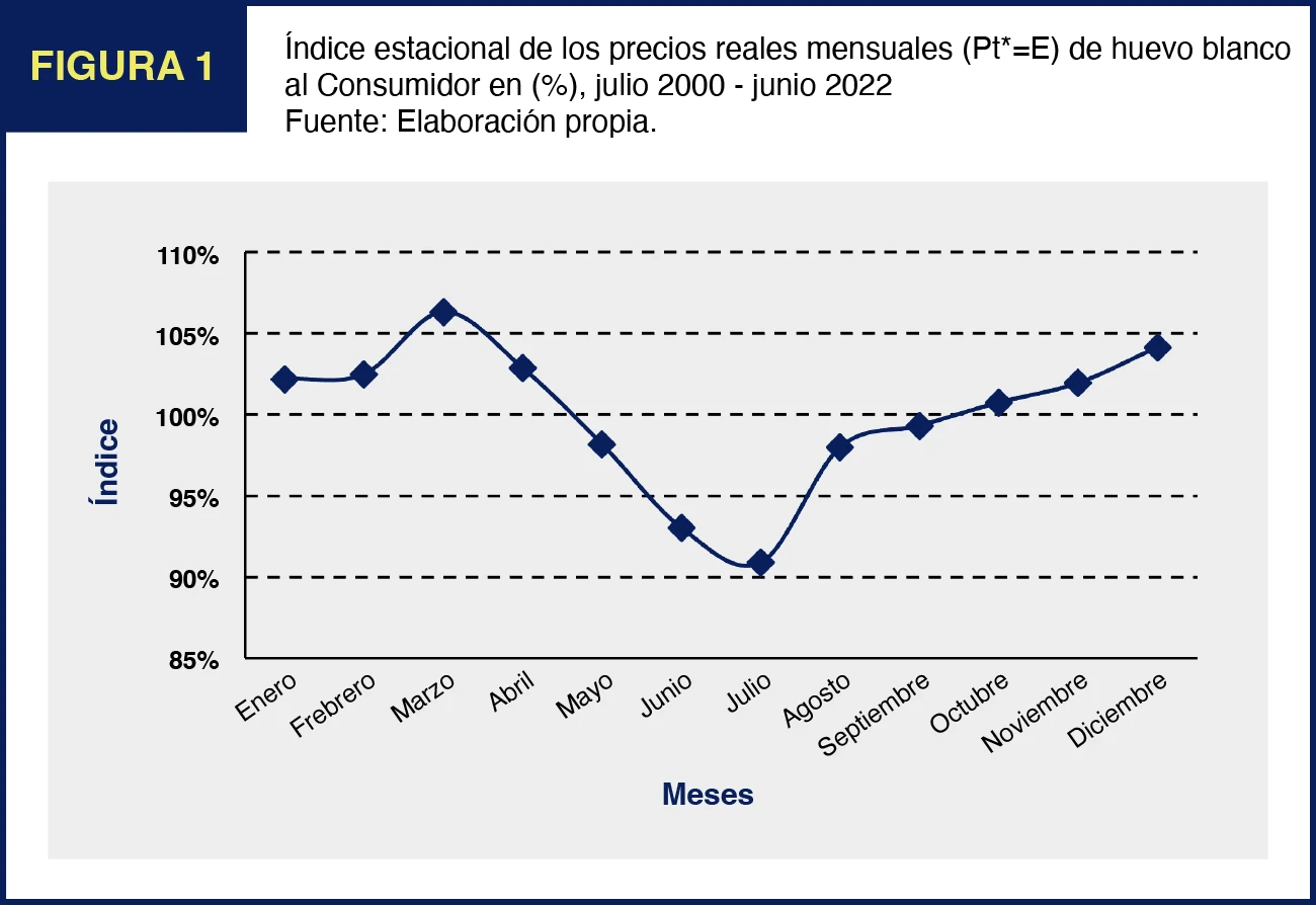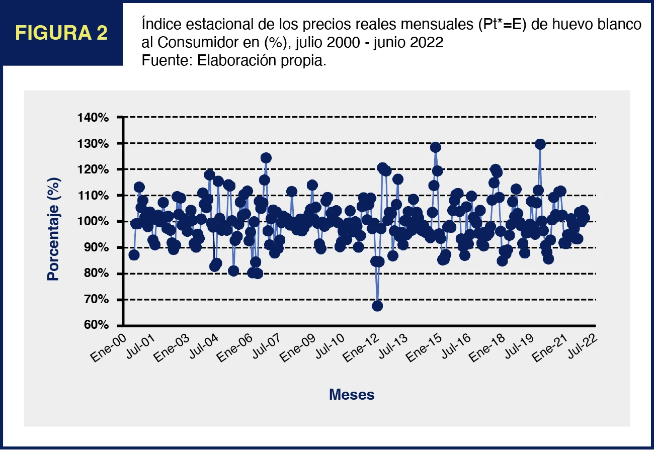 La existencia del CE en el precio del huevo blanco al consumidor en el Valle de México está presente en las fluctuaciones características de los precios. La presencia de estacionalidad en el precio se explica por las características fisiológicas y climatológicas propias de las aves, que requieren de horas calor para la postura y en consecuencia en la óptima producción de los huevos, así como de la uniformidad en la demanda por el mercado interno a lo largo del año. Por lo tanto, no es posible incidir y mitigar dicho efecto, aunque pudieran existir otras alternativas para disminuir el impacto de la volatilidad del precio de dicho producto.