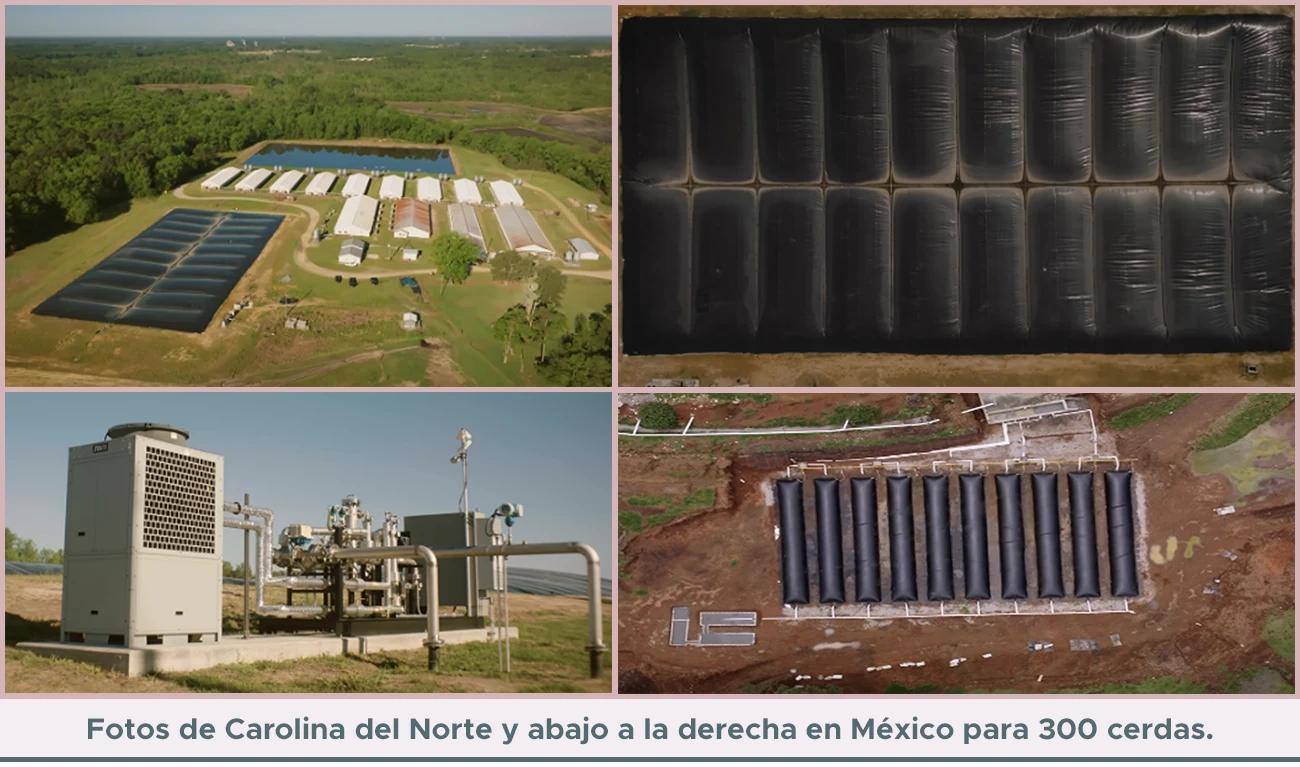 Se establece una biorefinería de subproductos para valorizar por sistema de conducción controlada en cada fase, un esquema de bioeconomía circular como recurso energético a los subproductos líquidos para obtener biofertilizantes de las aguas de desecho, así como reutilizando el agua de limpieza reciclada y empleando los sólidos húmedos para la producción de proteína de insectos comestibles para posteriormente ir incorporando las compostas deshidratadas y abonos húmedos a las tierras agrícolas para incrementar la materia orgánica del suelo y capacidad de retención del agua de riego, al mejorar las propiedades porosas del suelo. En su conjunto estratégico reducir la huella ambiental de carbono de la granja porcina, reducir malos olores y generar ahorros e ingresos para amortizar las inversiones, con la posibilidad de gestionar créditos de carbono en el mercado internacional.