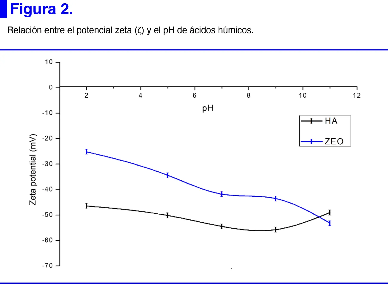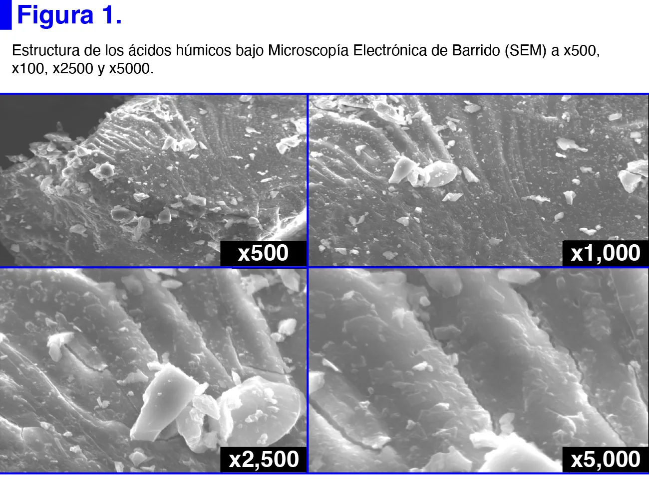 Los ácidos húmicos se caracterizaron mediante las técnicas de potencial Z (ζ), espectroscopia de infrarrojo con transformada de Fourier con reflexión total atenuada (FTIR-ATR) y microscopia electrónica de barrido (SEM) previamente descritas (20).
