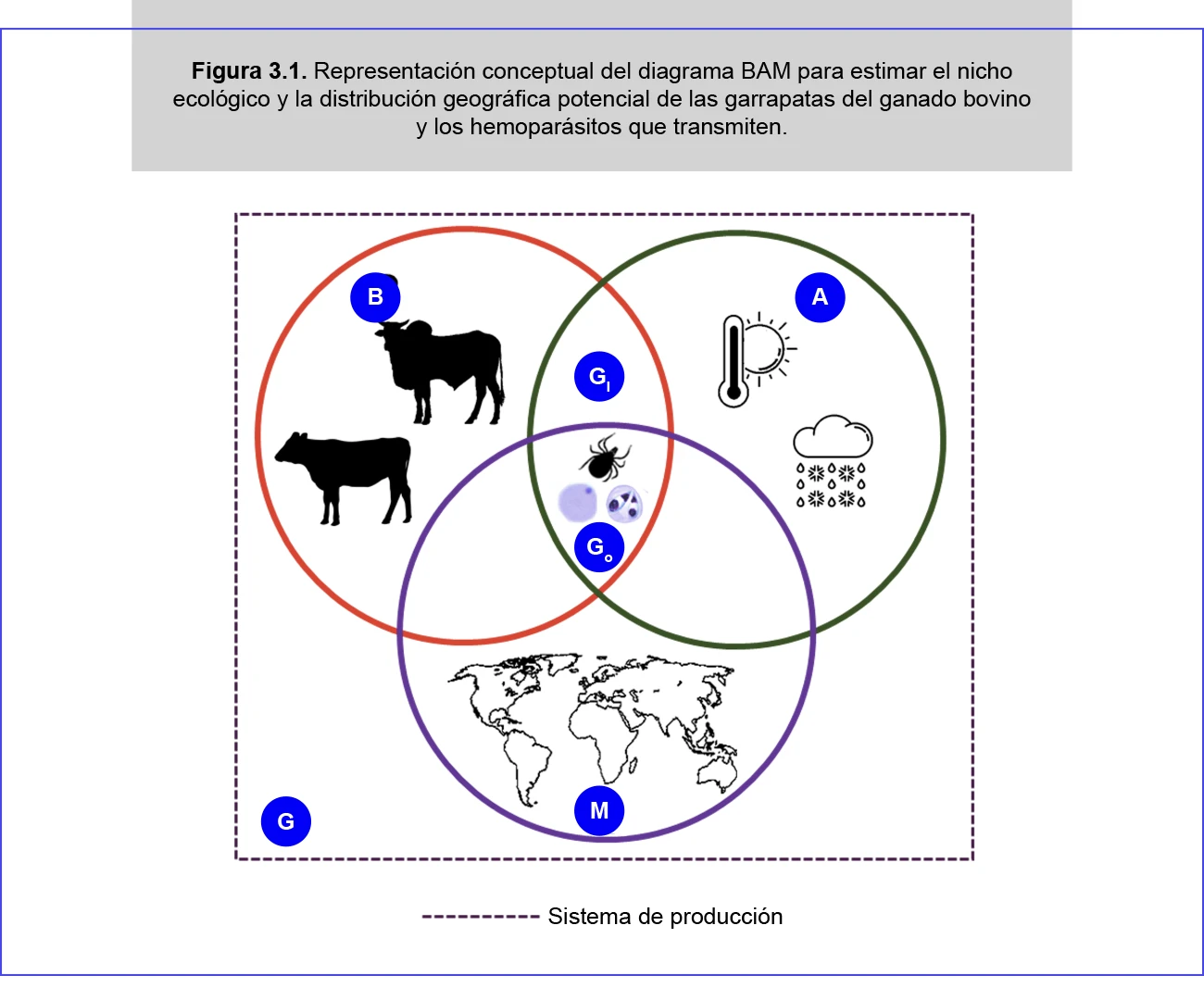 Expuesto lo anterior, a continuación, describimos y representamos gráficamente diversas maneras para el uso de los modelos de nicho ecológico y de distribución de las especies de garrapatas de interés en la salud bovina, así como para los patógenos que transmiten (Figura 3.1 y 3.2):