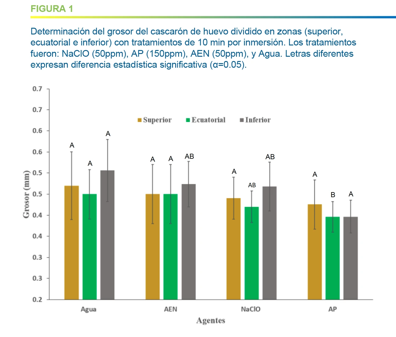 Determinación del efecto del AEN en el grosor del cascarón de huevo