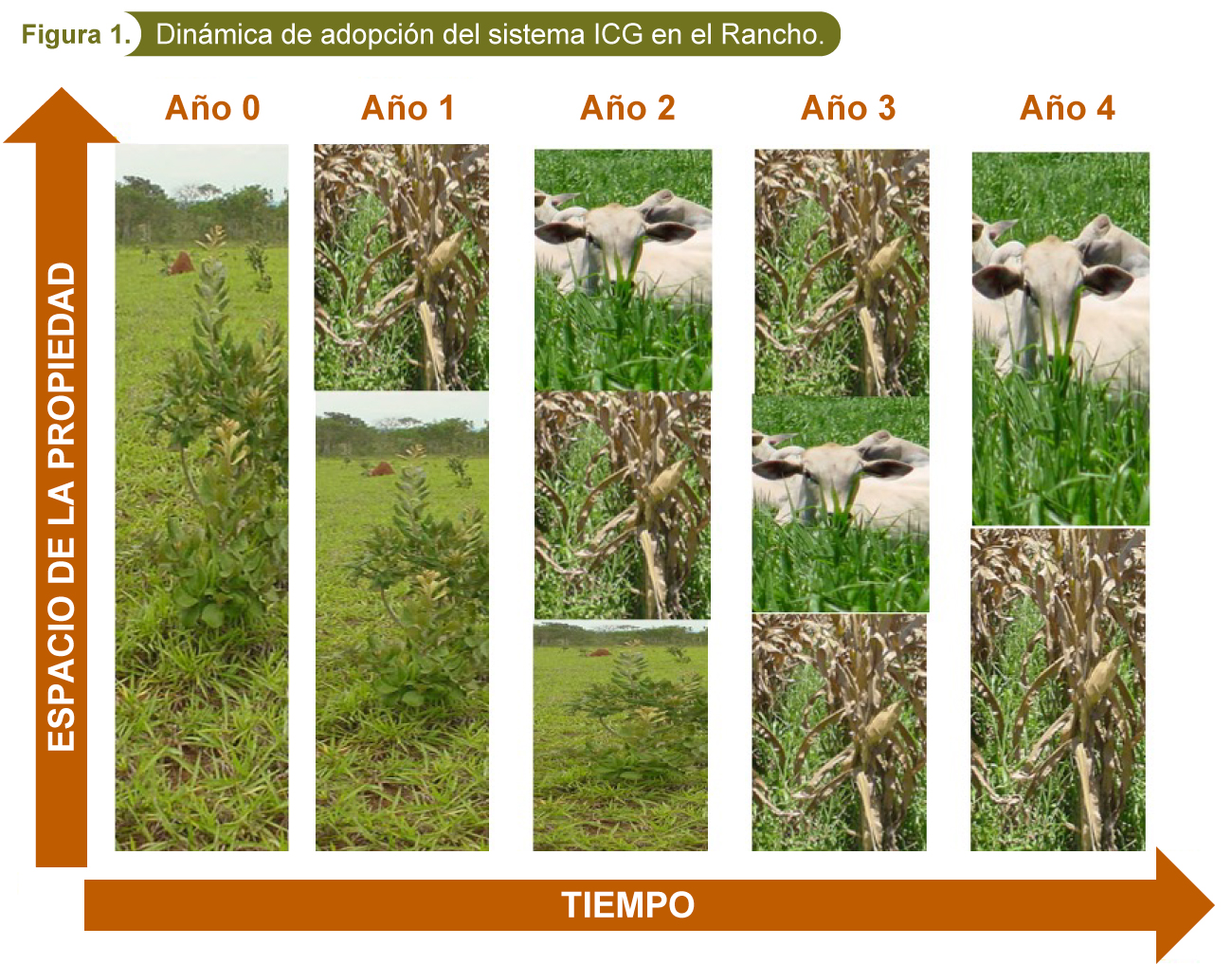 Se propone que para la adopción en el Rancho de una Integración Cultivo-Ganadera, se levante un censo de las áreas degradadas o a reformar, en primera instancia o aquellas áreas aptas para producción agrícola si la finalidad será producción de granos bajo este sistema, por lo cual, en el primer año de ese total se trabaje hasta el 25%, y con los años subsecuentes ir extrapolando a 25% de las otras áreas censadas para que el cuarto año de ejecución se concrete el 100%, esto es de acuerdo al nivel económico y tecnológico del productor.
