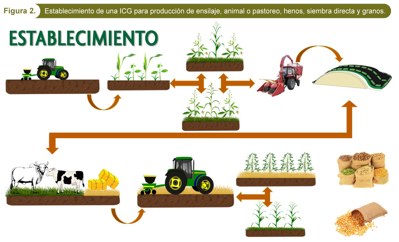 posteriormente dejar descansar la gramínea forrajera y su desecación 30 días antes para establecer cultivo bajo siembra directa, aquí bajo decisión del productor con auxilio del acompañamiento especializado, siendo cultivo de maíz, soya o sorgo.