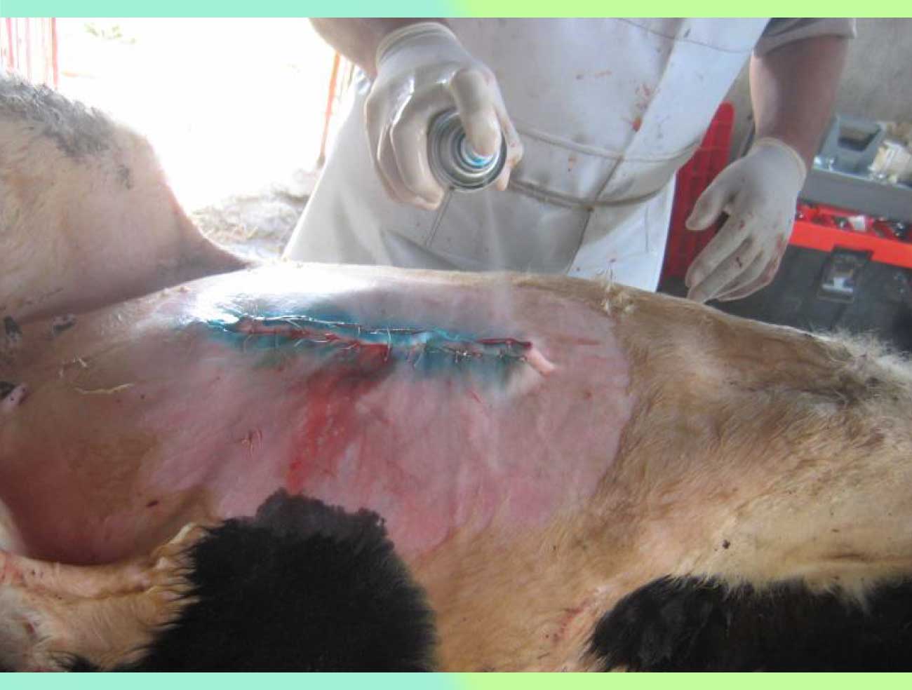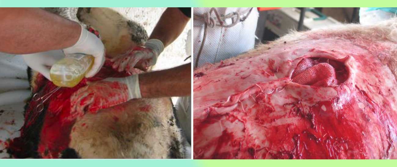Alojar a la becerra en un corral limpio con cama abundante. Ofrecer forraje verde y agua adlibitum. Aplicar diariamente cicatrizante sobre la herida. Administrar antibióticos como Penicilina Benzatínica a una dosis de 22,000 UI/Kg PV durante 5 días cada 24 horas y un analgésico no esteroidal (AINES) durante 3 días como Meglumine de Flunixine a una dosis de 1.1 mg/Kg PV cada 24 horas. Se recomienda retirar los puntos a los 15 días.