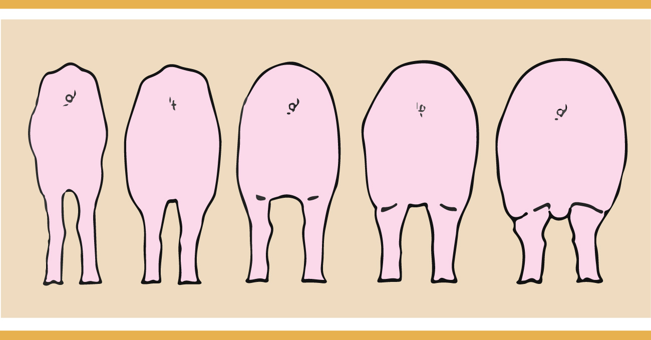 Condición corporal 4 (cc4): cerda gorda, pelvis y los huesos de la columna vertebral sólo se aprecian haciendo gran presión con la palma de la mano. Contorno en forma de tubo.