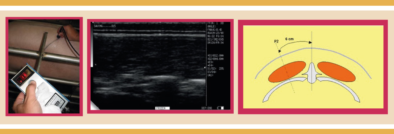 Desde hace varias décadas se utiliza el espesor de grasa dorsal como parámetro de medida del estado de reservas corporales, ¿este parámetro se vuelve más objetivo? destinado a medir, mediante ecografía, el espesor de grasa dorsal (mm) en un punto de referencia del dorso de la cerda situando la sonda entre unos 6-7 cm de la línea media por detrás de la última costilla (punto conocido como P2) y eso dependerá también de la capacitación de una persona y esta evaluación puede tener un poco de error al tomar la lectura y también implica una nueva tarea dentro del proceso de gestación y lactancia.