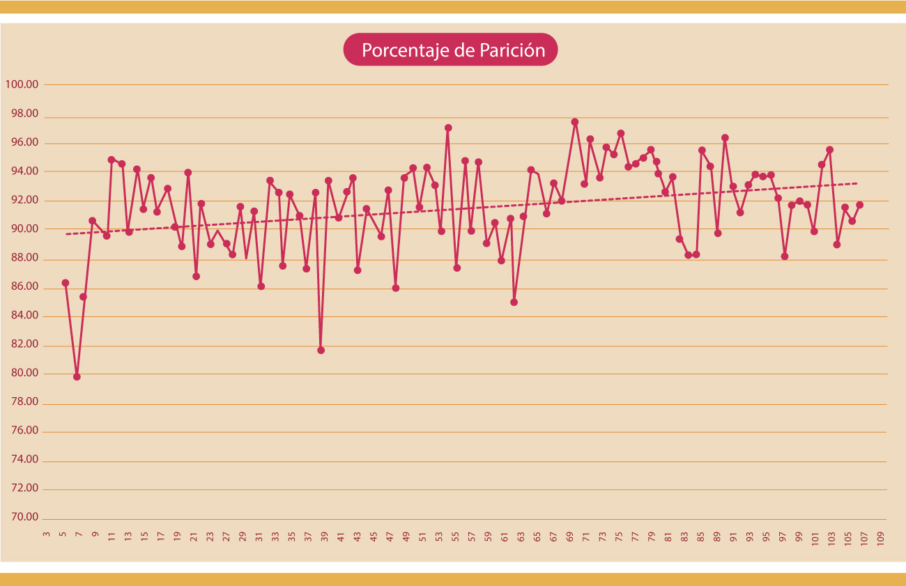 Ya con la información de estos dos parámetros el seguimiento era el de evaluar la mejora en la tasa de parto (fertilidad), pasamos de tener una tasa de parto del 86.59% en las primeras 26 semanas a 93.1% en las últimas 23 semanas.