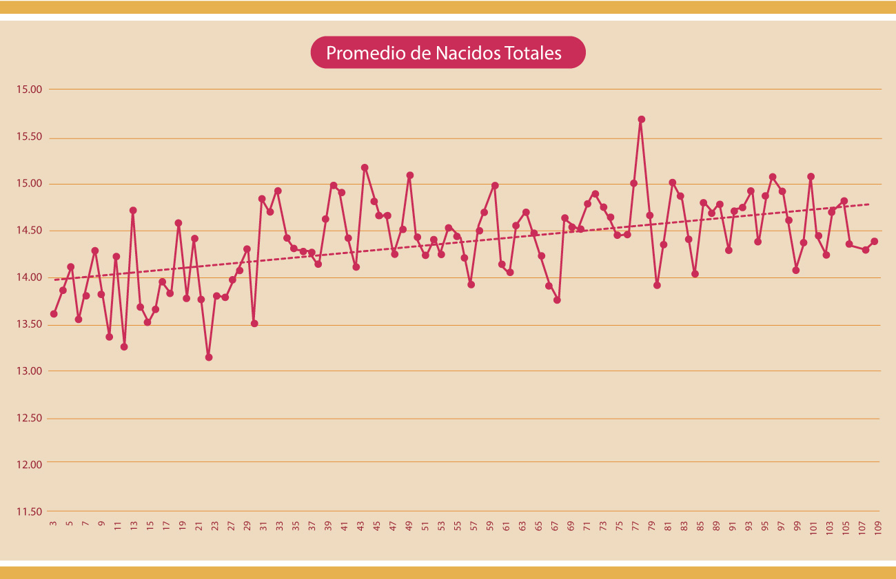 Esta mejora también se dio en el tamaño de la camada, como se muestra en la gráfica siguiente.